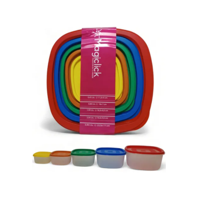 El set de herméticos Magiclick arcoíris x 5 es una solución práctica para conservar, organizar y transportar alimentos en el hogar.